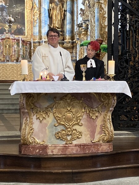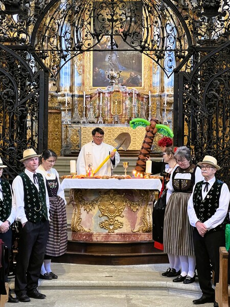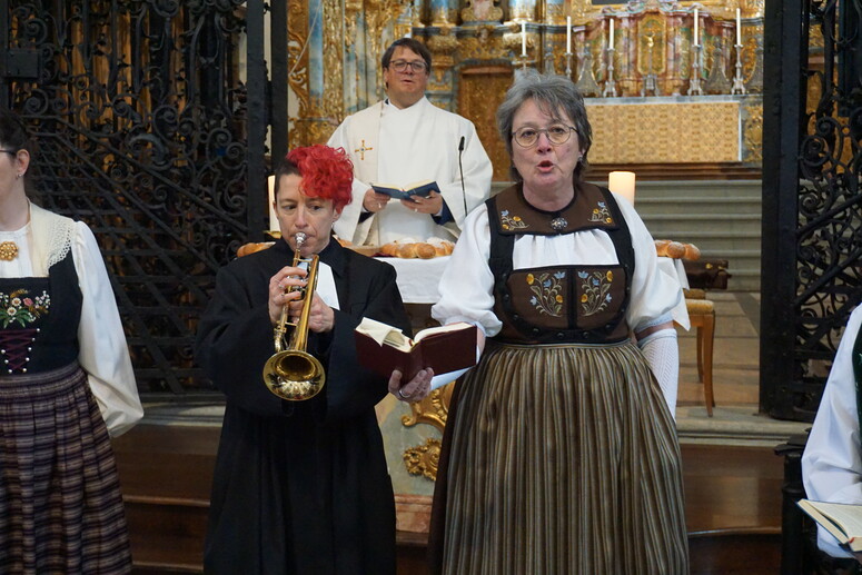 Mit dem Motto „Aufblühen“, haben sich die GastroSeelsorgerin Corinne Dobler und Adrian Bolzern, Seelsorger der Zirkusleute, Schausteller:innen und Markthändler:innen für ein der Saison angepasstes Motto entschieden, auch wenn dieses frühlingshafte und bunte Aufblühen in der prunkvollen, aber dem Wetter entsprechend kühlen Klosterkirche etwas Vorstellungskraft benötigte.